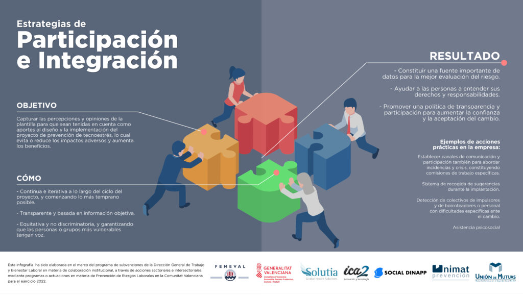Desde Unimat Prevención estamos trabajando en el Proyecto “GESTO: Gestión psicosocial ante cambios tecnológicos en organizaciones” junto con Femeval, Unión de Mutuas, Social Dinapp e ICA2. Un proyecto que estudia cómo afrontar los procesos de transformación digital en empresas desde el punto de vista psicosocial, con el fin de evitar conflictos derivados de la resistencia al cambio tecnológico.