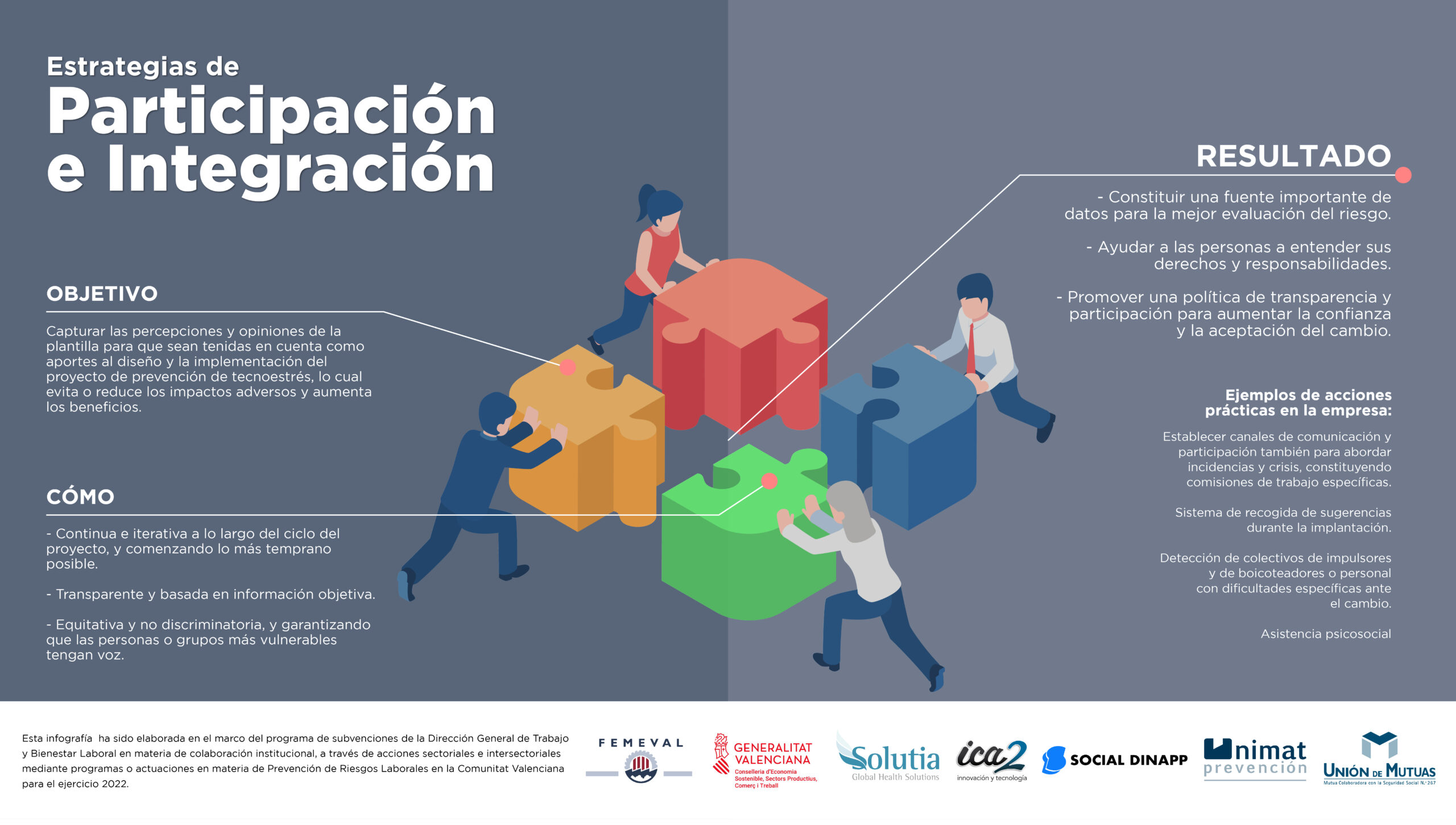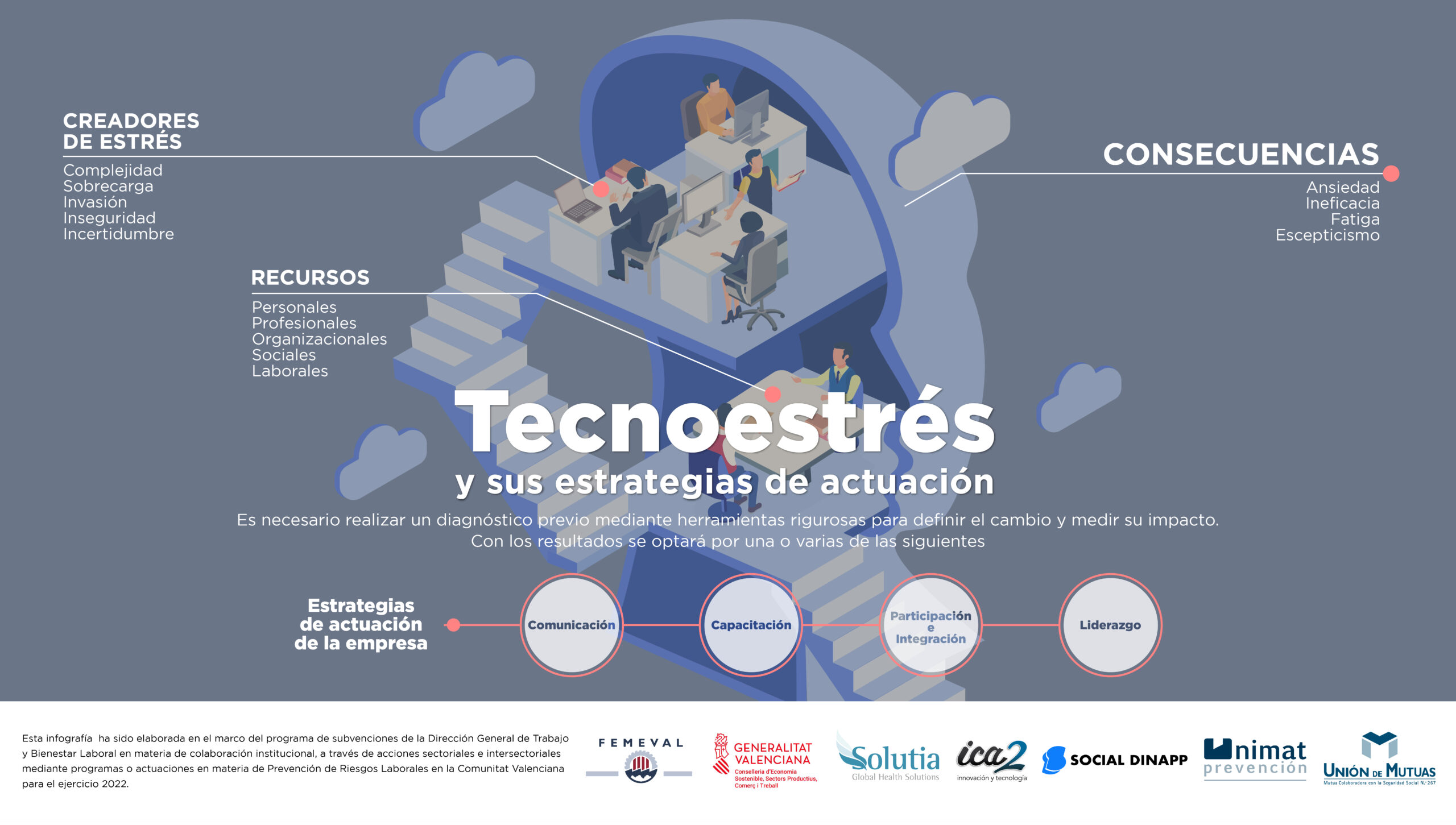 Asimismo, persigue establecer una metodología innovadora que aborde la prevención y gestión del tecnoestrés y los riesgos psico-sociales asociados a la incorporación de las TIC en las organizaciones.
